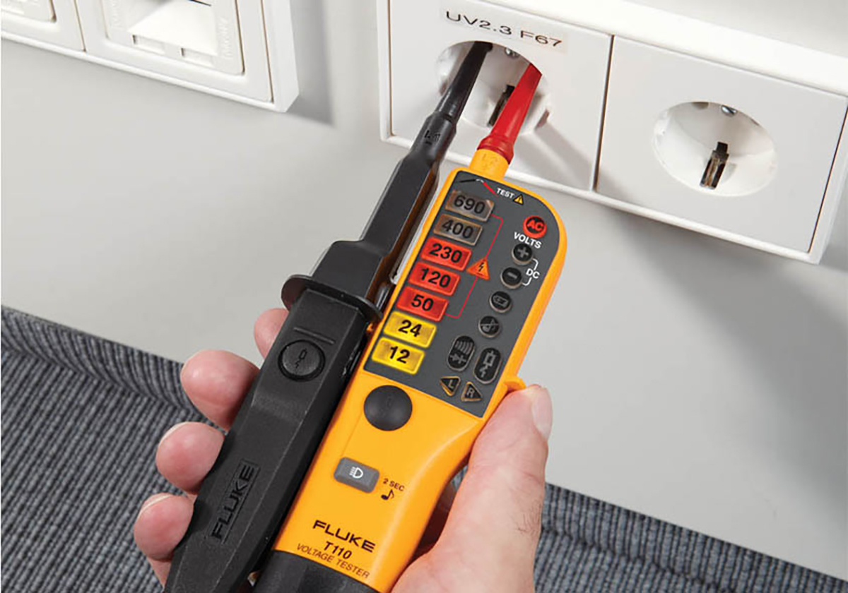 This is T110 Voltage Indicator with RCD Trip Test Continuity Check CAT III 690 V CAT IV 600 V With RS Calibration manufactured by Fluke. The manufacturer part number is FLUKE T110. It features a remarkable digital display. The given dimensions of the product include 260 x 70 x 38mm. The typical product's weight is 280g. In addition, the height is 38mm. Furthermore, the product is 70mm wide. Its accurate length is 260mm.