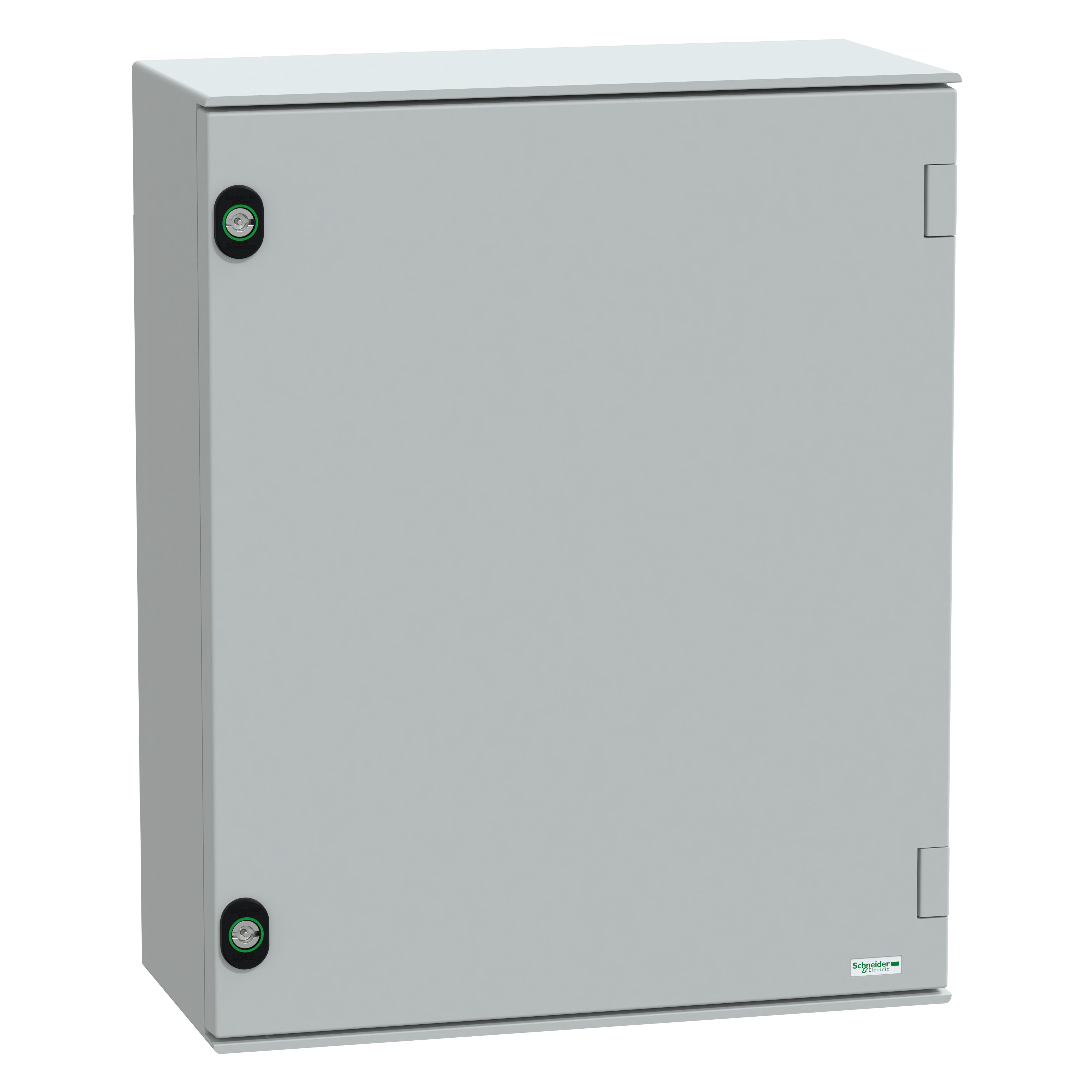 This is Thalassa PLM IP66 Wall Box PET Grey 530 x 430 x 200mm manufactured by Schneider Electric. The manufacturer part number is NSYPLM54G. The product thalassa plm, is a highly preferred choice for users. The product's body is nicely designed from pet materials. It is rated with ip66. The product is made from highly stable and reliable fiberglass/polyester. The product is rohs3 compliant. Features a typical area dimensions of 353in² (2277cm²). A type of enclosure container. It is shipped in box. The product's diameters include 20.866" l x 16.929" w (530.00mm x 430.00mm). It has a long 8 weeks standard lead time. Its typical moisture sensitivity level is 1 (unlimited). It has a classic gray colour. In addition, the height is 7.874" (200.00mm). Design Information: cover included.