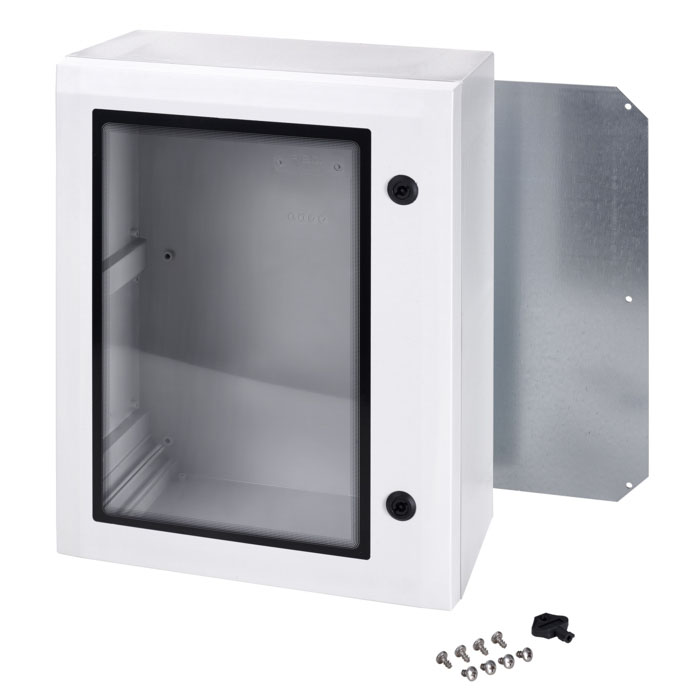 This is Polycarbonate Wall Box IP65 300mm x 700 mm x 500 mm manufactured by Fibox. The manufacturer part number is ARCA 705030W. The product's body is nicely designed from polycarbonate materials.