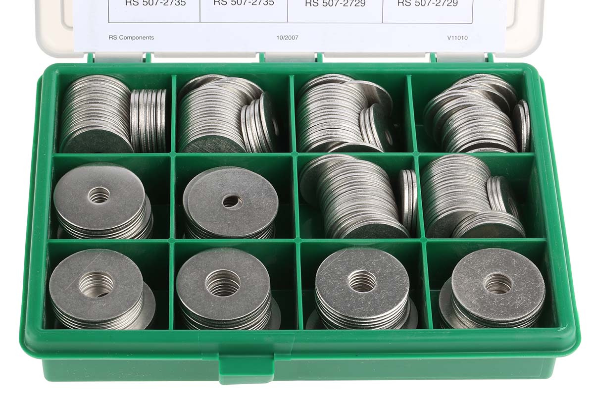 This is 240 piece Mudguard Stainless Steel Washers A2 304 manufactured by RS Pro. The manufacturer part number is 395-418. A quality product with a nice plain finish. It has an Outside Diameter Smallest Size of 25mm The product is made from highly stable and reliable stainless steel. The product's Outside Diameter Largest Size is about 30mm