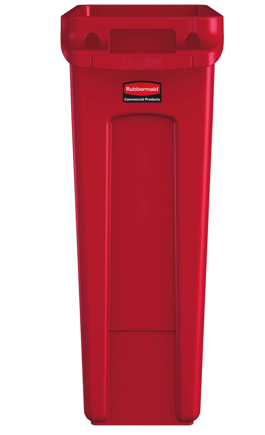 This is Slim Jim 23gal Red Polypropylene Waste Bin manufactured by Rubbermaid Commercial Products. The manufacturer part number is 1956189. The module has the capacity of 23gal. The product is made from highly stable and reliable polypropylene. The product comes in 558.8mm depth.
