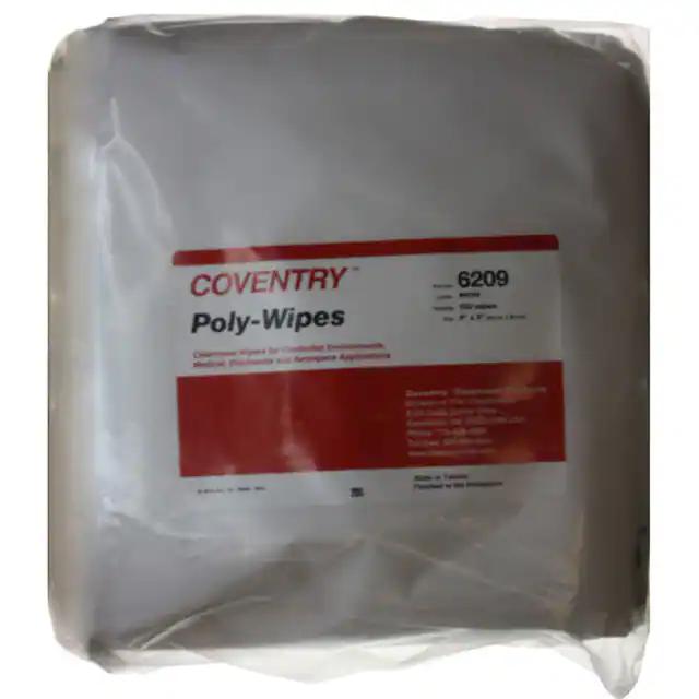 This is manufactured by Chemtronics. The manufacturer part number is 6209. It is assigned with possible HTSUS value of 3401.19.0000. The product is rohs3 compliant. The product's typical Applications include uses in critical tasks. Specifications include lint free, microfiber. In addition, it is reach unaffected. It is shipped in bag. Its typical moisture sensitivity level is not applicable. It has a long 6 weeks standard lead time. Available in 1 (150 ea 9" l x 9" w) quantity. The product coventry™, poly-wipes™, is a highly preferred choice for users. The product is designated with the ear99 code number
