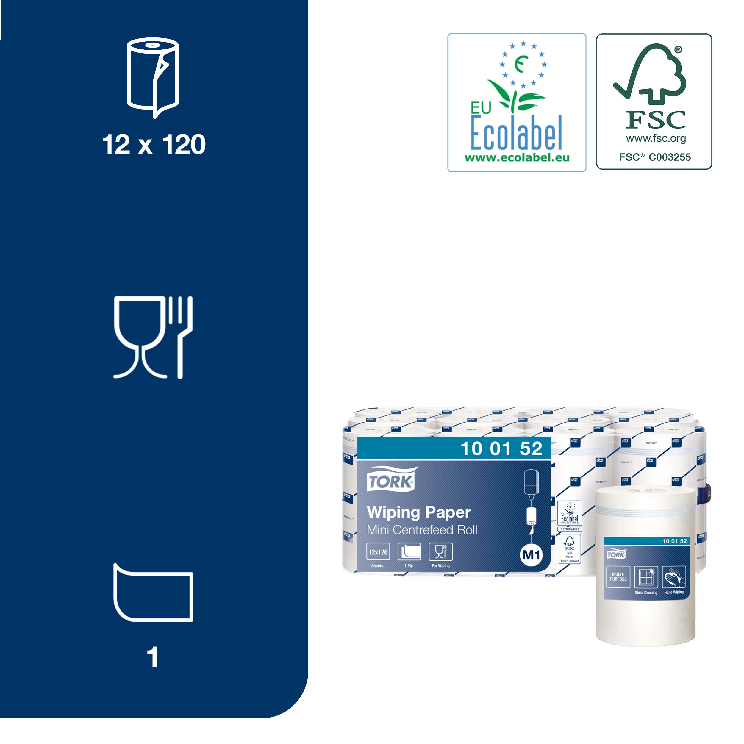 This is Centrefeed of 1 White Wiping Paper Paper Wipes for Glass Use manufactured by Tork. The manufacturer part number is 100152.