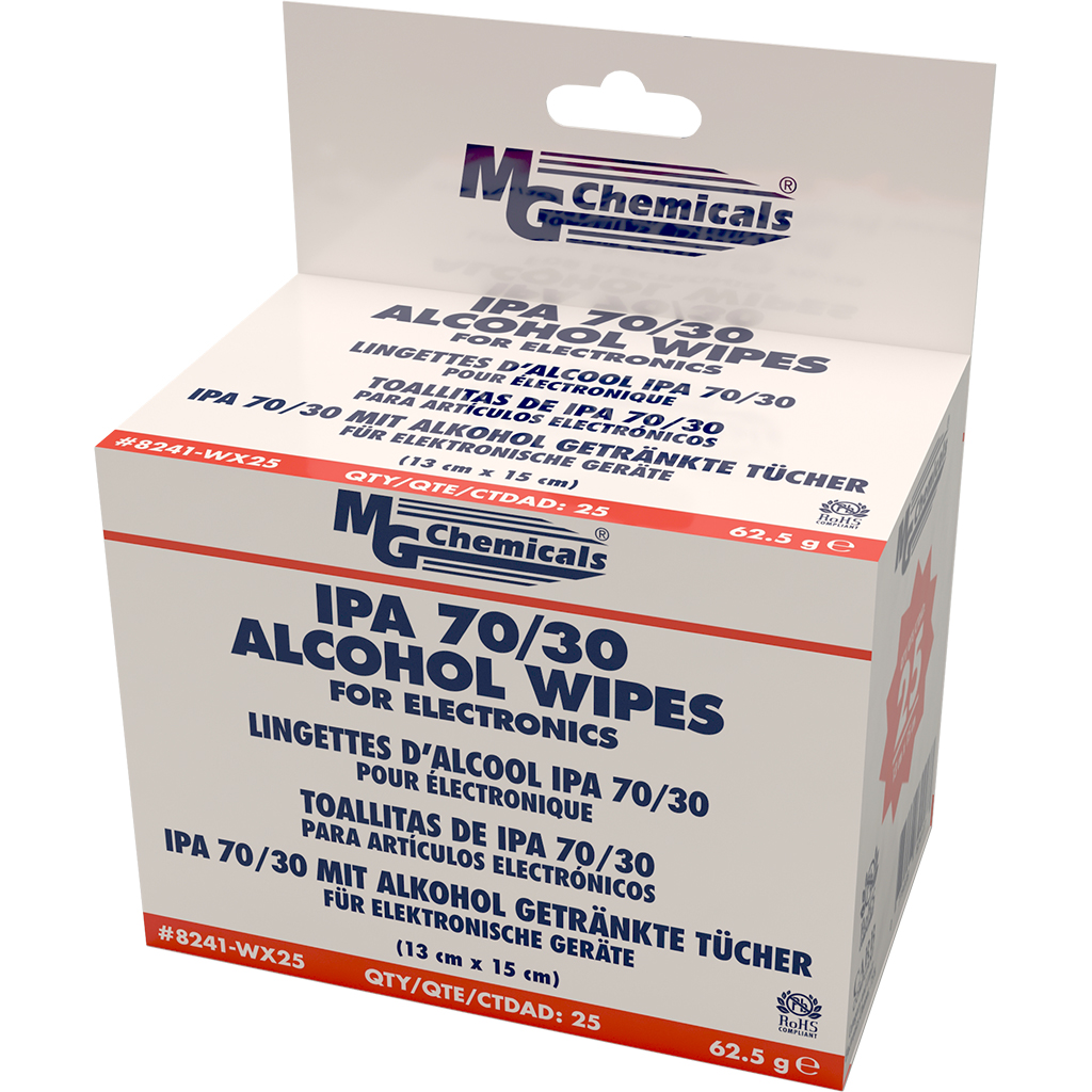 This is Bag of 25 Anti Static Wipe manufactured by MG Chemicals. The manufacturer part number is 8241-WX25.