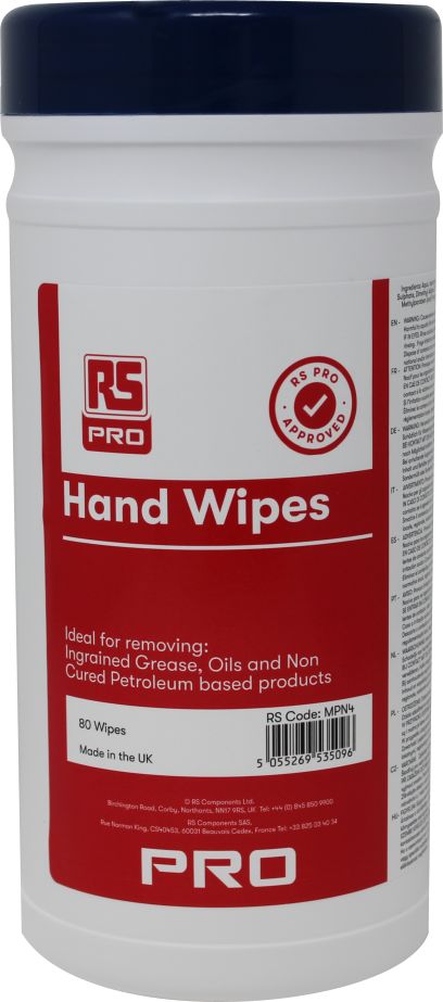 This is Wet Hand Wipes for General Cleaning Use Tub of 80 manufactured by RS PRO. The manufacturer part number is 224-6653.