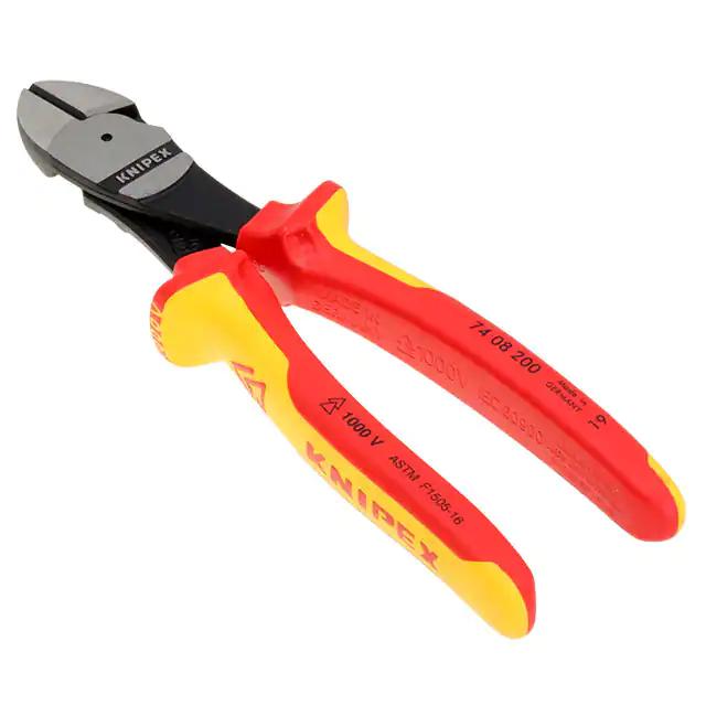 This is manufactured by Knipex Tools LP. The manufacturer part number is 74 08 200 US. The product has an integral 8.00" (203.2mm) overall length. The module has the capacity of 3.2mm dia hard wire, 4.4mm dia medium wire, 2.4mm dia piano wire. The splendid features of the product include high leverage, insulated to 1000v, soft grips. It is assigned with possible HTSUS value of 8203.20.6060. It is shipped in bulk. It is a oval product with unique specifications. Its typical moisture sensitivity level is 1 (unlimited). In addition, it is vendor undefined. It comes in side (diagonal) configuration. Moreover, it corresponds to 74 08 200, a base product number of the product. The product is designated with the ear99 code number