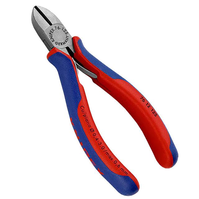 This is manufactured by Knipex Tools LP. The manufacturer part number is 76 12 125. The product has an integral 5.00" (127.0mm) overall length. The module has the capacity of 1.2mm dia hard wire, 2mm dia medium wire, 0.8mm dia piano wire, 0.4 ~ 2.4mm dia soft wire. The splendid features of the product include soft grips. It is assigned with possible HTSUS value of 8203.20.6060. It is shipped in bulk. It is a oval product with unique specifications. Its typical moisture sensitivity level is 1 (unlimited). In addition, it is vendor undefined. It comes in side (diagonal) configuration. The product is designated with the ear99 code number