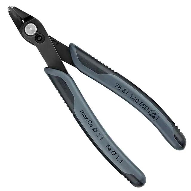 This is manufactured by Knipex Tools LP. The manufacturer part number is 78 61 140 ESD. The product has an integral 5.50" (139.7mm) overall length. The module has the capacity of 1.6mm dia medium wire, 0.4 ~ 3.2mm dia soft wire. The splendid features of the product include esd safe, soft grips. It is assigned with possible HTSUS value of 8203.30.0000. It is shipped in bulk. It is a oval product with unique specifications. Its typical moisture sensitivity level is 1 (unlimited). In addition, it is vendor undefined. It comes in side (diagonal) configuration. Moreover, it corresponds to 78 61, a base product number of the product. The product is designated with the ear99 code number