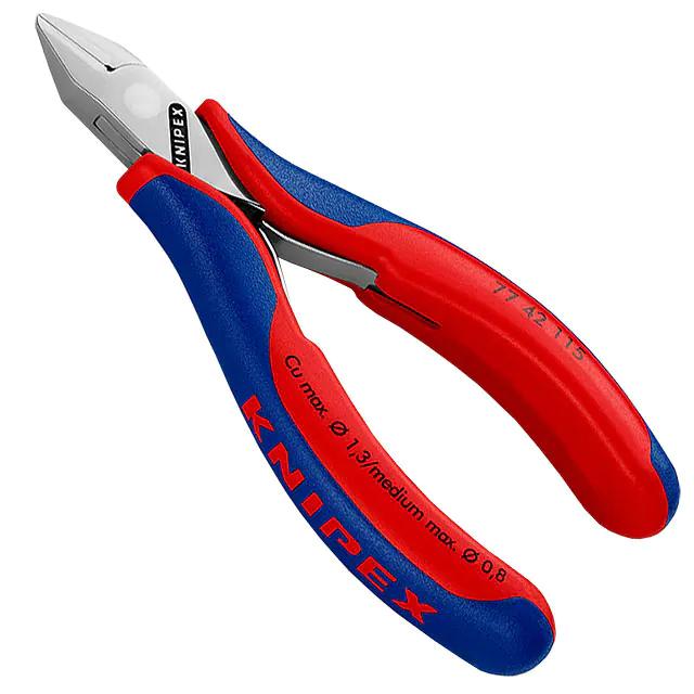 This is manufactured by Knipex Tools LP. The manufacturer part number is 77 42 115. The product has an integral 4.50" (114.3mm) overall length. The module has the capacity of 0.8mm dia medium wire, 0.4 ~ 1.2mm dia soft wire. The splendid features of the product include soft grips. It is assigned with possible HTSUS value of 8203.20.6060. It is shipped in bulk. It is a oval product with unique specifications. Its typical moisture sensitivity level is 1 (unlimited). In addition, it is vendor undefined. It comes in side (diagonal) configuration. The product is designated with the ear99 code number