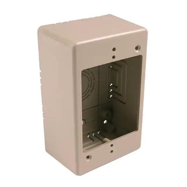 This is manufactured by HellermannTyton. The manufacturer part number is TSRI-JB2. It is assigned with possible HTSUS value of 8536.90.8530. It is shipped in bulk. It has a classic ivory colour. The product tsr, is a highly preferred choice for users. The product is rohs compliant. It is a type of junction box - 1 gang, with adhesive accessory. Its typical moisture sensitivity level is 1 (unlimited). Moreover, it corresponds to tsri, a base product number of the product. It has a long 2 weeks standard lead time. The product is suitable for use with tsr low voltage surface raceway. The product is designated with the ear99 code number