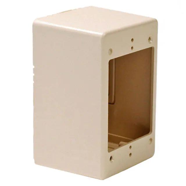 This is manufactured by HellermannTyton. The manufacturer part number is TSRI-JB3. It is assigned with possible HTSUS value of 3926.90.9985. It is shipped in bulk. It has a classic ivory colour. The product tsr, is a highly preferred choice for users. The product is rohs compliant. It is a type of junction box - 1 gang, with adhesive accessory. Its typical moisture sensitivity level is 1 (unlimited). Moreover, it corresponds to tsri, a base product number of the product. It has a long 4 weeks standard lead time. The product is suitable for use with tsr low voltage surface raceway. The product is designated with the ear99 code number