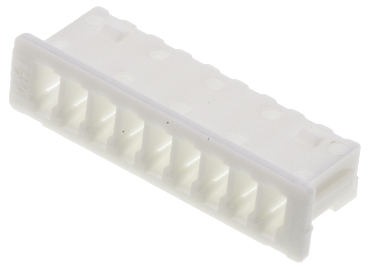 This is PICOBLADE Series 1.25mm Pitch 9 Way 1 Row Female Straight Crimp Connector Housing 51021 manufactured by Molex. The manufacturer part number is 51021-0900. The product is available in cable mount configuration. In addition, female is the available "Gender" of the product. Moreover, the product is 1.25mm The product also features robust polyester housing material. Furthermore, the product is 3.2mm wide. Its accurate length is 13mm. It comes in 1 of rows. The product picoblade, is a highly preferred choice for users. The product contains 9 contacts.