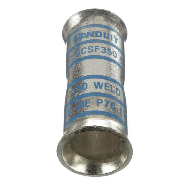 This is manufactured by Panduit Corp. The manufacturer part number is SCSF350-6. It is assigned with possible HTSUS value of 8536.90.4000. The product is rohs3 compliant. In addition, it is reach unaffected. The terminal is a butt splice, inline, individual openings type. It is shipped in bulk. Moreover, the product has a wire gauge of 350mcm (kcmil). It features 2 wire entries. Its typical moisture sensitivity level is not applicable. The product features crimp termination style. It has a long 4 weeks standard lead time. It has a classic blue colour. Insulation Option: non-insulated. Moreover, it corresponds to scsf, a base product number of the product. The product is designated with the ear99 code number