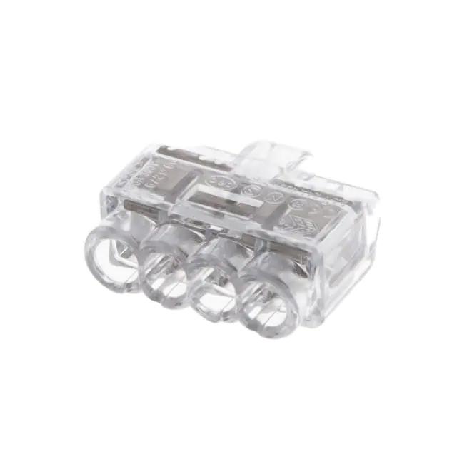 This is manufactured by TE Connectivity AMP Connectors. The manufacturer part number is 2324697-4. It is assigned with possible HTSUS value of 8536.90.4000. The product is rohs3 compliant. The terminal is a butt splice, closed end, individual openings type. It is shipped in bulk. Moreover, the product has a wire gauge of 12-22 awg. It features 4 wire entries. Its typical moisture sensitivity level is 1 (unlimited). The product features push in termination style. It has a long 20 weeks standard lead time. It has a classic clear colour. The product push grip, is a highly preferred choice for users. Insulation Option: fully insulated. Moreover, it corresponds to 2324697, a base product number of the product. The product is designated with the ear99 code number