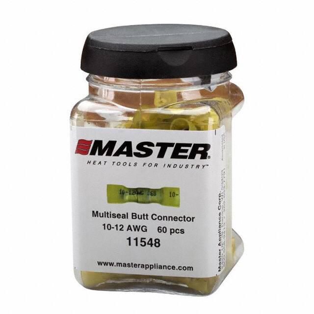 This is manufactured by Master Appliance Co. The manufacturer part number is 11548. It is assigned with possible HTSUS value of 8536.90.4000. The product is rohs3 compliant. In addition, it is reach unaffected. The terminal is a butt splice, inline, individual openings type. It is shipped in bulk. Moreover, the product has a wire gauge of 10-12 awg. It features 2 wire entries. Its typical moisture sensitivity level is not applicable. The product features crimp termination style. It has a long 4 weeks standard lead time. It has a classic yellow colour. The product multiseal™, is a highly preferred choice for users. Insulation Option: fully insulated heat shrink. The product is designated with the ear99 code number