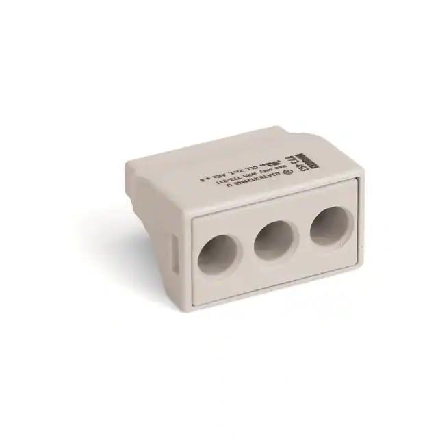 This is manufactured by WAGO Corporation. The manufacturer part number is 773-493. It is assigned with possible HTSUS value of 8536.90.4000. The product is rohs3 compliant. The terminal is a butt splice, inline, individual openings type. It is shipped in box. Moreover, the product has a wire gauge of 10-14 awg. It features 3 wire entries. Its typical moisture sensitivity level is not applicable. The product features push in termination style. It has a long 12 weeks standard lead time. The splendid features of the product include releasable. It has a classic gray colour. Insulation Option: fully insulated. The product is designated with the ear99 code number
