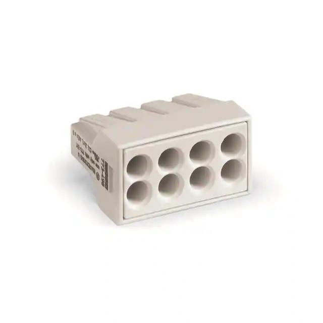This is manufactured by WAGO Corporation. The manufacturer part number is 773-498. It is assigned with possible HTSUS value of 8536.90.4000. The product is rohs3 compliant. The terminal is a butt splice, inline, individual openings type. It is shipped in box. Moreover, the product has a wire gauge of 14-18 awg. It features 8 wire entries. Its typical moisture sensitivity level is not applicable. The product features push in termination style. It has a long 12 weeks standard lead time. The splendid features of the product include releasable. It has a classic gray colour. Insulation Option: fully insulated. The product is designated with the ear99 code number