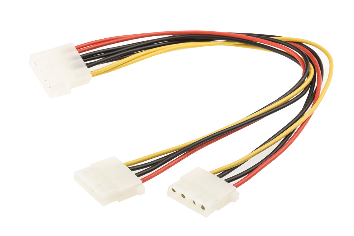 This is Power lead 5.25in to 2pcs 5.25in drive manufactured by Roline. The manufacturer part number is 11.03.1005-100. It is a typical connector cable assembly cable. Furthermore, the cable has a 300mm of length.