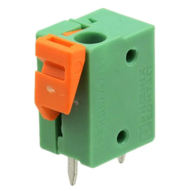This is manufactured by Phoenix Contact. The manufacturer part number is 1790490. It is assigned with possible HTSUS value of 8536.69.4040. The product is rohs compliant. The product also features robust polyamide (pa), nylon housing material. The mating comes in a vertical with board orientation. The wire terminals available include screwless - spring cage, tension clamp. It is shipped in bulk. Moreover, the product has a wire gauge of 16-22 awg. Its typical moisture sensitivity level is 1 (unlimited). The product carries 1 levels. It has a long 16 weeks standard lead time. Features a 10 a current in A. The splendid features of the product include interlocking (side), lever actuated. The product is available in through hole configuration. It has a classic green colour. The product combicon ffkdsa, is a highly preferred choice for users. It has 1 positions each level. It carries a 300 v of voltage. The product is designated with the ear99 code number
