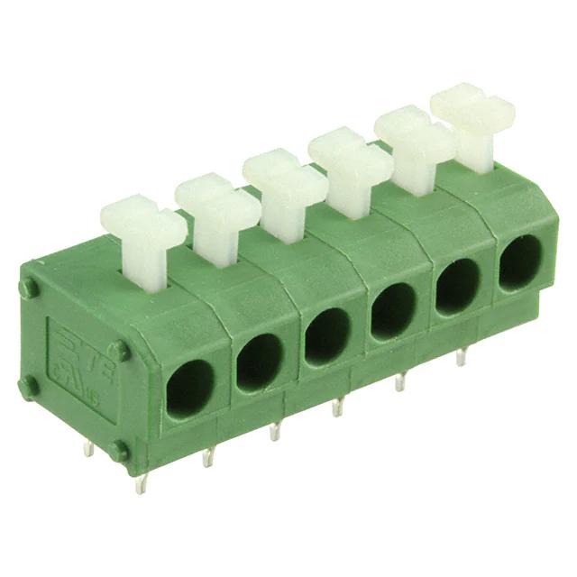 This is manufactured by TE Connectivity AMP Connectors. The manufacturer part number is 1-2834018-6. It is assigned with possible HTSUS value of 8536.69.4040. The product is rohs compliant. The product also features robust polyamide (pa66), nylon 6/6 housing material. The product has -40°c ~ 105°c operating temperature range. While the contact is copper alloy - tin plated. The mating comes in a horizontal with board orientation. The wire terminals available include screwless - push button clamp. It is shipped in bulk. Moreover, the product has a wire gauge of 14-20 awg. The clamp is designed from robust materials including steel, stainless. Its typical moisture sensitivity level is not applicable. The product carries 1 levels. It has a long 40 weeks standard lead time. Features a 10 a current in A. The product is available in through hole configuration. It has a classic green colour. It has 6 positions each level. It carries a 300 v of voltage. Moreover, the product is 0.197" (5.00mm) Moreover, it corresponds to 2834018, a base product number of the product. The product is designated with the ear99 code number