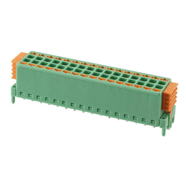 This is manufactured by Phoenix Contact. The manufacturer part number is 1848781. It is assigned with possible HTSUS value of 8536.69.4040. The product is rohs compliant. The product also features robust polyamide (pa), nylon housing material. While the contact is tin plated. The mating comes in a vertical with board orientation. The wire terminals available include screwless - leg spring, push-in spring. It is shipped in bulk. Moreover, the product has a wire gauge of 16-24 awg. Its typical moisture sensitivity level is 1 (unlimited). The product carries 2 levels. It has a long 7 weeks standard lead time. Features a 8 a current in A. The splendid features of the product include board lock. The product is available in through hole, skedd configuration. It has a classic green colour. The product sddc, is a highly preferred choice for users. It has 16 positions each level. It carries a 300 v of voltage. Moreover, the product is 0.138" (3.50mm) The product is designated with the ear99 code number