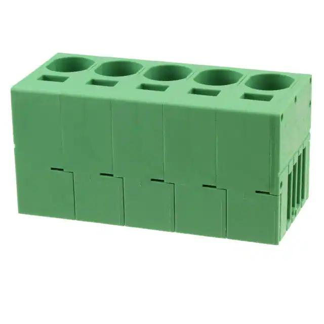 This is manufactured by Phoenix Contact. The manufacturer part number is 1845373. It is assigned with possible HTSUS value of 8536.90.4000. The product is rohs3 compliant. Features a 101 a current in A. The mating comes in a vertical with board orientation. In addition, it is reach unaffected. The wire terminals available include screwless - spring cage, tension clamp. It is shipped in bulk. Moreover, the product has a wire gauge of 2-14 awg. Its typical moisture sensitivity level is 1 (unlimited). The product carries 1 levels. It has a long 11 weeks standard lead time. The product also features robust polyamide (pa), nylon housing material. The product is available in through hole configuration. It has a classic green colour. The product combicon spt, is a highly preferred choice for users. It has 5 positions each level. It carries a 600 v of voltage. Moreover, the product is 0.591" (15.00mm) The product is designated with the ear99 code number