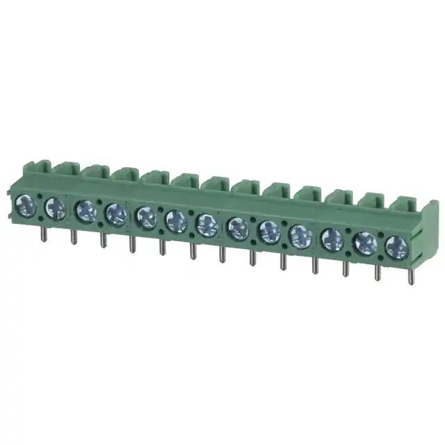 This is manufactured by Phoenix Contact. The manufacturer part number is 1935420. It is assigned with possible HTSUS value of 8536.69.4040. The product is rohs compliant. The product also features robust polyamide (pa), nylon housing material. The mating comes in a vertical with board orientation. The product has a m2.6 screw threads. The wire terminals available include screw. It is shipped in bulk. Moreover, the product has a wire gauge of 12-26 awg. Its typical moisture sensitivity level is 1 (unlimited). The product carries 1 levels. It carries torque - screw values of 0.35-0.4 nm (3.1-3.5 lb-in). It has a long 11 weeks standard lead time. Features a 18 a current in A. The splendid features of the product include interlocking (side). The product is available in through hole configuration. It has a classic green colour. The product combicon pt, is a highly preferred choice for users. It has 13 positions each level. It carries a 300 v of voltage. Moreover, the product is 0.197" (5.00mm) The product is designated with the ear99 code number