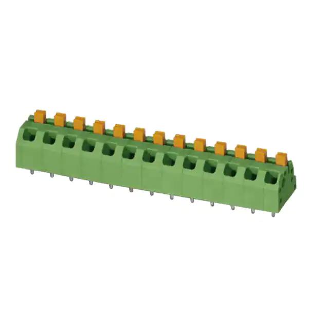 This is manufactured by Phoenix Contact. The manufacturer part number is 1862521. The product sptaf 1/13-5.0-el, is a highly preferred choice for users. The product has a current rating of 16a. The product is available in through hole configuration. Moreover, the product has a nominal 320 v voltage rating. In addition, male is the available "Gender" of the product. The product is made from highly stable and reliable polyamide. Its accurate length is 65mm. Furthermore, the product is 11mm wide. The product comes in 12.8mm depth. It comes in 1 of rows. Moreover, the product is 5mm The product contains 13 contacts. It comes in pcb terminal block configuration. It is assigned with possible HTSUS value of 8536.69.4040. The product is rohs compliant. The product also features robust polyamide (pa), nylon housing material. The mating comes in a 45° (135°) angle with board orientation. The wire terminals available include screwless - leg spring, push-in spring. It is shipped in bulk. Moreover, the product has a wire gauge of 16-24 awg. Its typical moisture sensitivity level is not applicable. The product carries 1 levels. It has a long 12 weeks standard lead time. Features a 8 a current in A. The splendid features of the product include interlocking (side). It has a classic green colour. The product combicon sptaf el, is a highly preferred choice for users. It has 13 positions each level. It carries a 300 v of voltage. Moreover, the product is 0.197" (5.00mm) The product is designated with the ear99 code number