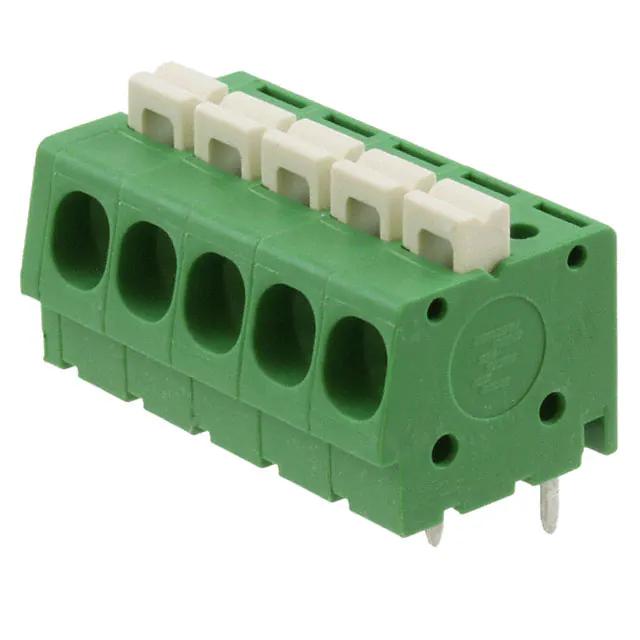 This is manufactured by TE Connectivity AMP Connectors. The manufacturer part number is 1986711-5. It is assigned with possible HTSUS value of 8536.69.4040. The product is rohs3 compliant. Features a 16 a current in A. The product has -40°c ~ 110°c operating temperature range. While the contact is copper alloy - tin plated. The mating comes in a horizontal with board orientation. In addition, it is vendor undefined. The wire terminals available include screwless - push button clamp. It is shipped in bulk. Moreover, the product has a wire gauge of 12-30 awg. The clamp is designed from robust materials including steel. Its typical moisture sensitivity level is 1 (unlimited). The product carries 1 levels. It has a long 42 weeks standard lead time. The product also features robust polyamide (pa), nylon housing material. The splendid features of the product include interlocking (side). The product is available in through hole configuration. It has a classic green colour. It has 5 positions each level. It carries a 300 v of voltage. Moreover, the product is 0.197" (5.00mm) Moreover, it corresponds to 1986711, a base product number of the product. The product is designated with the ear99 code number