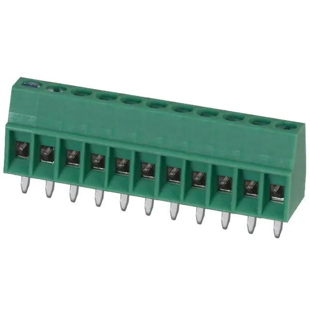 This is manufactured by Phoenix Contact. The manufacturer part number is 1725740. It is assigned with possible HTSUS value of 8536.69.4040. The product is rohs3 compliant. Features a 6 a current in A. The mating comes in a horizontal with board orientation. The product has a m1.6 screw threads. In addition, it is reach affected. The wire terminals available include screw. It is shipped in bulk. Moreover, the product has a wire gauge of 20-30 awg. Its typical moisture sensitivity level is 1 (unlimited). The product carries 1 levels. It carries torque - screw values of 0.12-0.15 nm (1.0-1.3 lb-in). It has a long 11 weeks standard lead time. The product also features robust polyamide (pa), nylon housing material. The product is available in through hole configuration. It has a classic green colour. The product combicon mpt, is a highly preferred choice for users. It has 11 positions each level. It carries a 125 v of voltage. Moreover, the product is 0.100" (2.54mm) The product is designated with the ear99 code number