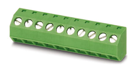 This is manufactured by Phoenix Contact. The manufacturer part number is 1869334. The product has a current rating of 13.5a. The product is available in through hole configuration. Moreover, the product has a nominal 630 v voltage rating. The product smkdsn 1.5/14-5.08, is a highly preferred choice for users. The product is made from highly stable and reliable polyamide. Its accurate length is 12mm. Moreover, the product is 5.08mm The product contains 14 contacts. It comes in pcb terminal block configuration. It is assigned with possible HTSUS value of 8536.69.4040. The product is rohs compliant. The product also features robust polyamide (pa), nylon housing material. The mating comes in a 55° (125°) angle with board orientation. The product has a m3 screw threads. The wire terminals available include screw - rising cage clamp. It is shipped in bulk. Moreover, the product has a wire gauge of 14-30 awg. Its typical moisture sensitivity level is 1 (unlimited). The product carries 1 levels. It carries torque - screw values of 0.5-0.6 nm (4.4-5.3 lb-in). It has a long 38 weeks standard lead time. Features a 10 a current in A. It has a classic green colour. The product combicon smkdsn, is a highly preferred choice for users. It has 14 positions each level. It carries a 300 v of voltage. Moreover, the product is 0.200" (5.08mm) The product is designated with the ear99 code number