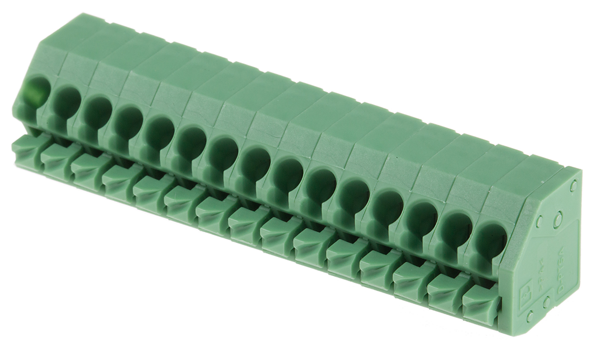 This is manufactured by Phoenix Contact. The manufacturer part number is 1985098. The product has a current rating of 2a. The product is available in through hole configuration. Moreover, the product has a nominal 250 v voltage rating. The product ptsa 1.5/15-3.5-f, is a highly preferred choice for users. The product is made from highly stable and reliable nylon. It comes in 1 of rows. Moreover, the product is 3.5mm It comes in terminal blocks configuration. It is assigned with possible HTSUS value of 8536.69.4040. The product is rohs compliant. The product also features robust polyamide (pa), nylon housing material. The mating comes in a 45° (135°) angle with board orientation. The wire terminals available include screwless - spring cage, tension clamp. It is shipped in bulk. Moreover, the product has a wire gauge of 16-24 awg. Its typical moisture sensitivity level is 1 (unlimited). The product carries 1 levels. It has a long 4 weeks standard lead time. Features a 2 a current in A. It has a classic green colour. The product combicon ptsa, is a highly preferred choice for users. It has 15 positions each level. It carries a 300 v of voltage. Moreover, the product is 0.138" (3.50mm) The product is designated with the ear99 code number