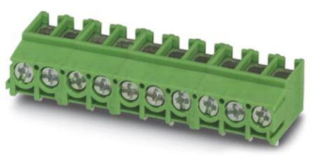 This is manufactured by Phoenix Contact. The manufacturer part number is 1987818. The product combicon pt, is a highly preferred choice for users. The product has a current rating of 32a. The product is available in through hole configuration. Moreover, the product has a nominal 400 v voltage rating. In addition, male is the available "Gender" of the product. The product is made from highly stable and reliable polyamide. Its accurate length is 55mm. Furthermore, the product is 13.5mm wide. The product comes in 9mm depth. It comes in 1 of rows. Moreover, the product is 5mm The product contains 11 contacts. It comes in pcb terminal block configuration. It is assigned with possible HTSUS value of 8536.69.4040. The product is rohs compliant. The product also features robust polyamide (pa), nylon housing material. The mating comes in a vertical with board orientation. The product has a m3 screw threads. The wire terminals available include screw. It is shipped in bulk. Moreover, the product has a wire gauge of 12-20 awg. Its typical moisture sensitivity level is 1 (unlimited). The product carries 1 levels. It carries torque - screw values of 0.45-0.5 nm (3.9-4.4 lb-in). It has a long 8 weeks standard lead time. Features a 20 a current in A. The splendid features of the product include interlocking (side). It has a classic green colour. It has 11 positions each level. It carries a 300 v of voltage. Moreover, the product is 0.197" (5.00mm) The product is designated with the ear99 code number