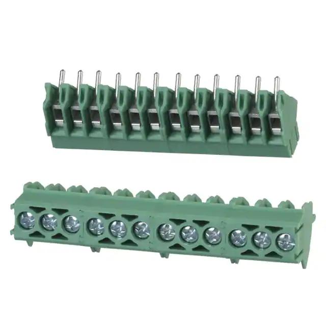This is manufactured by Phoenix Contact. The manufacturer part number is 1989052. The product combicon pta, is a highly preferred choice for users. The product has a current rating of 17.5a. The product is available in through hole configuration. Moreover, the product has a nominal 200 v voltage rating. In addition, male is the available "Gender" of the product. The product is made from highly stable and reliable polyamide. Its accurate length is 42mm. Furthermore, the product is 11.2mm wide. The product comes in 9.9mm depth. It comes in 1 of rows. Moreover, the product is 3.5mm The product contains 12 contacts. It comes in pcb terminal block configuration. It is assigned with possible HTSUS value of 8536.69.4040. The product is rohs compliant. The product also features robust polyamide (pa), nylon housing material. The mating comes in a 45° (135°) angle with board orientation. The product has a m2 screw threads. The wire terminals available include screw. It is shipped in bulk. Moreover, the product has a wire gauge of 16-26 awg. Its typical moisture sensitivity level is 1 (unlimited). The product carries 1 levels. It carries torque - screw values of 0.22-0.25 nm (1.9-2.2 lb-in). It has a long 14 weeks standard lead time. Features a 10 a current in A. The splendid features of the product include interlocking (side). It has a classic green colour. It has 12 positions each level. It carries a 300 v of voltage. Moreover, the product is 0.138" (3.50mm) The product is designated with the ear99 code number