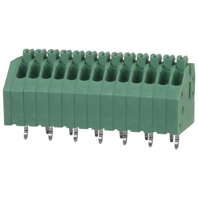 This is manufactured by Phoenix Contact. The manufacturer part number is 1990119. It is assigned with possible HTSUS value of 8536.69.4040. The product is rohs compliant. The product also features robust polyamide (pa), nylon housing material. The mating comes in a 45° (135°) angle with board orientation. The wire terminals available include screwless - spring cage, tension clamp. It is shipped in bulk. Moreover, the product has a wire gauge of 20-26 awg. Its typical moisture sensitivity level is 1 (unlimited). The product carries 1 levels. It has a long 10 weeks standard lead time. Features a 2 a current in A. The product is available in through hole configuration. It has a classic green colour. The product combicon ptsa, is a highly preferred choice for users. It has 13 positions each level. It carries a 300 v of voltage. Moreover, the product is 0.098" (2.50mm) The product is designated with the ear99 code number