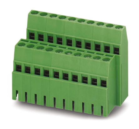 This is COMBICON MKDSD Series 3.81mm Pitch PCB Terminal Block Through Hole 11 Way manufactured by Phoenix Contact. The manufacturer part number is 1705634. The product has a current rating of 8a. The product is available in through hole configuration. Moreover, the product has a nominal 500 v voltage rating. The product mkdsd 1.5/11-3.81, is a highly preferred choice for users. The product is made from highly stable and reliable polyamide. Its accurate length is 9.3mm. Moreover, the product is 3.81mm The product contains 11 contacts. It comes in pcb terminal block configuration. It is assigned with possible HTSUS value of 8536.90.4000. It is shipped in bulk. The product is rohs compliant. Its typical moisture sensitivity level is 1 (unlimited). The product is designated with the ear99 code number