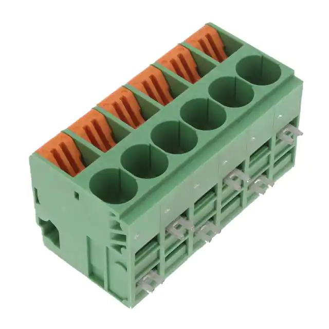 This is TDPT Series 10.16mm Pitch PCB Terminal Block PCB Mount 6 Way manufactured by Phoenix Contact. The manufacturer part number is 1017535. The product tdpt 16/ 6-sp-10.16-zb, is a highly preferred choice for users. The product has a current rating of 76a. The product is available in through hole configuration. Moreover, the product has a nominal 1000 v voltage rating. In addition, female is the available "Gender" of the product. The product is made from highly stable and reliable copper alloy (contact). Its accurate length is 31.9mm. Furthermore, the product is 58.38mm wide. The product comes in 31.2mm depth. It comes in 1 of rows. Moreover, the product is 10.16mm The product contains 6 contacts. It comes in pcb terminal block configuration. It is assigned with possible HTSUS value of 8536.90.4000. The product is rohs compliant. The product has -40°c operating temperature range. While the contact is tin. The mating comes in a horizontal with board orientation. The wire terminals available include screwless - leg spring, push-in spring. It is shipped in bulk. Moreover, the product has a wire gauge of 6-20 awg. Its typical moisture sensitivity level is not applicable. The product carries 1 levels. It has a long 13 weeks standard lead time. Features a 58 a current in A. The splendid features of the product include lever actuated. It has a classic green colour. The product combicon tdpt, is a highly preferred choice for users. It has 6 positions each level. It carries a 600 v of voltage. Moreover, the product is 0.400" (10.16mm) The product is designated with the ear99 code number