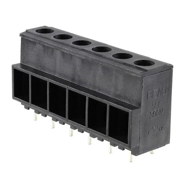This is manufactured by Molex. The manufacturer part number is 0399700106. It is assigned with possible HTSUS value of 8536.90.4000. The product is rohs3 compliant. Features a 60 a current in A. The product has -40°c ~ 130°c operating temperature range. While the contact is copper - tin plated. The mating comes in a horizontal with board orientation. The product has a m4 screw threads. In addition, it is reach unaffected. The wire terminals available include screw - rising cage clamp. It is shipped in bulk. Moreover, the product has a wire gauge of 6 awg. The clamp is designed from robust materials including brass - nickel plated. The screw offers added strength and is made from bronze - tin plated. Its typical moisture sensitivity level is 1 (unlimited). The product carries 1 levels. It carries torque - screw values of 1.36 nm (12 lb-in). It has a long 15 weeks standard lead time. The product also features robust polybutylene terephthalate (pbt) housing material. The product is available in through hole configuration. It has a classic black colour. The product eurostyle 39970, is a highly preferred choice for users. It has 6 positions each level. It carries a 300 v of voltage. Moreover, the product is 0.400" (10.16mm) Moreover, it corresponds to 039970, a base product number of the product. The product is designated with the ear99 code number