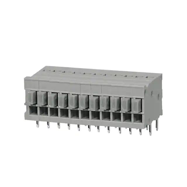 This is manufactured by CUI Devices. The manufacturer part number is TBL009-254-11GY-2GY. It is assigned with possible HTSUS value of 8536.90.4000. The product is rohs3 compliant. Features a 5 a current in A. The product has -40°c ~ 105°c operating temperature range. While the contact is copper alloy - tin plated. The mating comes in a horizontal with board orientation. In addition, it is reach unaffected. The wire terminals available include screwless - push button clamp. It is shipped in tray. Moreover, the product has a wire gauge of 18-26 awg. Its typical moisture sensitivity level is 1 (unlimited). The product carries 1 levels. It has a long 10 weeks standard lead time. The product also features robust polyamide (pa66), nylon 6/6 housing material. The splendid features of the product include interlocking (side), push button actuated. The product is available in through hole configuration. It has a classic gray colour. The product tbl009-254, is a highly preferred choice for users. It has 11 positions each level. It carries a 150 v of voltage. Moreover, the product is 0.100" (2.54mm) Moreover, it corresponds to tbl009, a base product number of the product. The product is designated with the ear99 code number