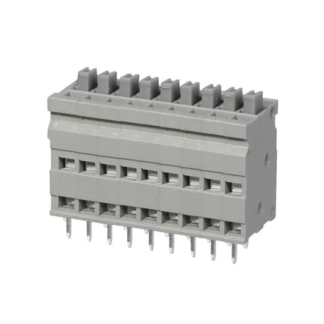 This is manufactured by CUI Devices. The manufacturer part number is TBL009V-254-09GY-2GY. It is assigned with possible HTSUS value of 8536.90.4000. The product is rohs3 compliant. Features a 5 a current in A. The product has -40°c ~ 105°c operating temperature range. While the contact is copper alloy - tin plated. The mating comes in a vertical with board orientation. In addition, it is reach unaffected. The wire terminals available include screwless - push button clamp. It is shipped in tray. Moreover, the product has a wire gauge of 18-26 awg. Its typical moisture sensitivity level is 1 (unlimited). The product carries 1 levels. It has a long 10 weeks standard lead time. The product also features robust polyamide (pa66), nylon 6/6 housing material. The splendid features of the product include interlocking (side), push button actuated. The product is available in through hole configuration. It has a classic gray colour. The product tbl009v-254, is a highly preferred choice for users. It has 9 positions each level. It carries a 150 v of voltage. Moreover, the product is 0.100" (2.54mm) Moreover, it corresponds to tbl009, a base product number of the product. The product is designated with the ear99 code number