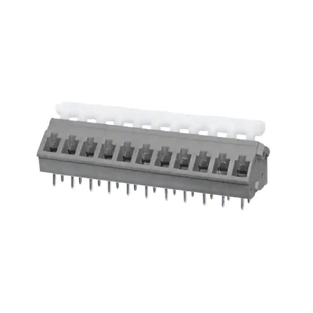 This is manufactured by CUI Devices. The manufacturer part number is TBL005A-500-11GY-2WT. It is assigned with possible HTSUS value of 8536.90.4000. The product is rohs3 compliant. Features a 15 a current in A. The product has -40°c ~ 105°c operating temperature range. While the contact is copper alloy - tin plated. The mating comes in a 45° (135°) angle with board orientation. In addition, it is reach unaffected. The wire terminals available include screwless - push button clamp. It is shipped in tray. Moreover, the product has a wire gauge of 14-26 awg. Its typical moisture sensitivity level is 1 (unlimited). The product carries 1 levels. It has a long 7 weeks standard lead time. The product also features robust polyamide (pa66), nylon 6/6 housing material. The splendid features of the product include interlocking (side), push button actuated. The product is available in through hole configuration. It has a classic gray colour. The product tbl005a-500, is a highly preferred choice for users. It has 11 positions each level. It carries a 300 v of voltage. Moreover, the product is 0.197" (5.00mm) Moreover, it corresponds to tbl005a, a base product number of the product. The product is designated with the ear99 code number
