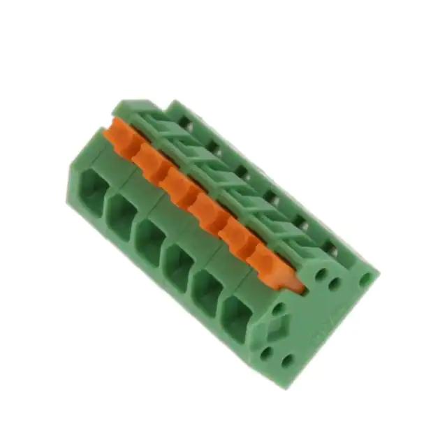This is manufactured by Phoenix Contact. The manufacturer part number is 1071003. It is assigned with possible HTSUS value of 8536.90.4000. The product is rohs3 compliant. The product also features robust polyamide (pa), nylon housing material. The product has -40°c ~ 100°c operating temperature range. While the contact is copper alloy - tin plated. The mating comes in a 45° (135°) angle with board orientation. In addition, it is reach unaffected. It is shipped in tray. Moreover, the product has a wire gauge of 16-24 awg. Its typical moisture sensitivity level is 1 (unlimited). The product carries 1 levels. It has a long 12 weeks standard lead time. The splendid features of the product include interlocking (side). The product is available in through hole configuration. It has a classic green colour. The product combicon sptaf, is a highly preferred choice for users. It has 6 positions each level. The wire terminals available include screwless - leg spring, push-in spring. Moreover, the product is 0.138" (3.50mm) The product is designated with the ear99 code number