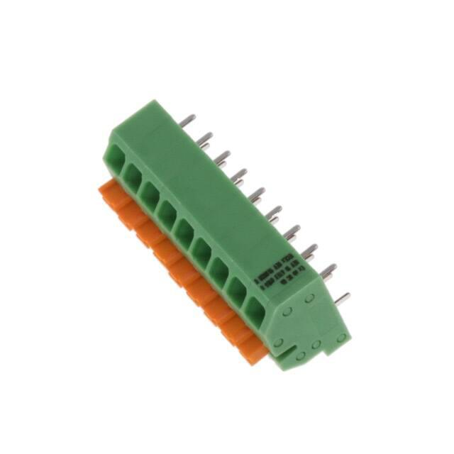 This is manufactured by Phoenix Contact. The manufacturer part number is 1071006. It is assigned with possible HTSUS value of 8536.90.4000. The product is rohs3 compliant. The product also features robust polyamide (pa), nylon housing material. The product has -40°c ~ 100°c operating temperature range. While the contact is copper alloy - tin plated. The mating comes in a 45° (135°) angle with board orientation. In addition, it is reach unaffected. It is shipped in tray. Moreover, the product has a wire gauge of 16-24 awg. Its typical moisture sensitivity level is 1 (unlimited). The product carries 1 levels. It has a long 12 weeks standard lead time. The splendid features of the product include interlocking (side). The product is available in through hole configuration. It has a classic green colour. The product combicon sptaf, is a highly preferred choice for users. It has 9 positions each level. The wire terminals available include screwless - leg spring, push-in spring. Moreover, the product is 0.138" (3.50mm) The product is designated with the ear99 code number