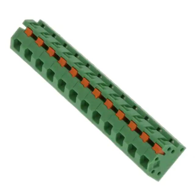 This is manufactured by Phoenix Contact. The manufacturer part number is 1071080. It is assigned with possible HTSUS value of 8536.90.4000. The product is rohs3 compliant. The product also features robust polyamide (pa), nylon housing material. The product has -40°c ~ 100°c operating temperature range. While the contact is copper alloy - tin plated. The mating comes in a 45° (135°) angle with board orientation. In addition, it is reach unaffected. It is shipped in tray. Moreover, the product has a wire gauge of 16-24 awg. Its typical moisture sensitivity level is 1 (unlimited). The product carries 1 levels. It has a long 12 weeks standard lead time. The splendid features of the product include interlocking (side). The product is available in through hole configuration. It has a classic green colour. The product combicon sptaf, is a highly preferred choice for users. It has 12 positions each level. The wire terminals available include screwless - leg spring, push-in spring. Moreover, the product is 0.197" (5.00mm) The product is designated with the ear99 code number