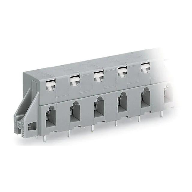 This is manufactured by WAGO Corporation. The manufacturer part number is 741-526. It is assigned with possible HTSUS value of 8536.90.4000. The product is rohs3 compliant. The product also features robust polyamide (pa66), nylon 6/6 housing material. The product has -60°c ~ 105°c operating temperature range. While the contact is electrolytic copper - tin plated. The mating comes in a horizontal with board orientation. The wire terminals available include screwless - push button clamp. It is shipped in box. Moreover, the product has a wire gauge of 12-28 awg. The clamp is designed from robust materials including steel - nickel plated. Its typical moisture sensitivity level is 1 (unlimited). The product carries 1 levels. It has a long 12 weeks standard lead time. Features a 10 a current in A. The splendid features of the product include mounting flange, push button actuated. The product is available in through hole configuration. It has a classic gray colour. It has 6 positions each level. It carries a 300 v of voltage. Moreover, the product is 0.394" (10.00mm) The product is designated with the ear99 code number