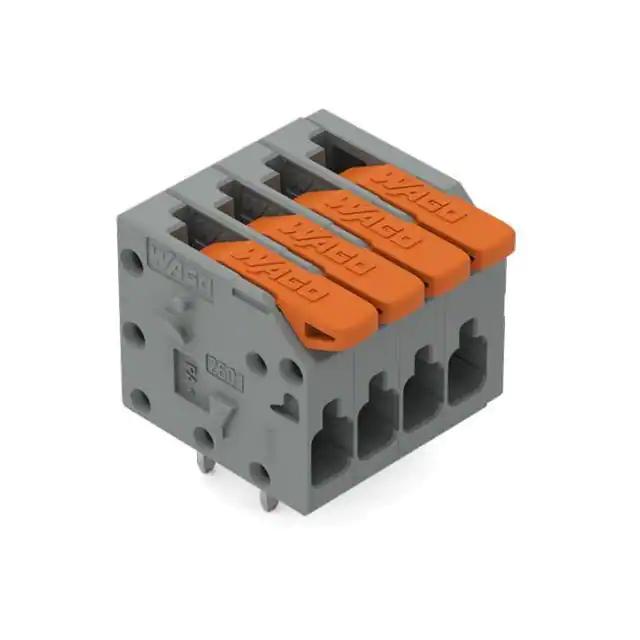 This is manufactured by WAGO Corporation. The manufacturer part number is 2601-1104. It is assigned with possible HTSUS value of 8536.90.4000. The product is rohs3 compliant. The product also features robust polyamide (pa66), nylon 6/6 housing material. The product has -60°c ~ 105°c operating temperature range. While the contact is electrolytic copper - tin plated. The mating comes in a horizontal with board orientation. The wire terminals available include screwless - leg spring, push-in spring. It is shipped in box. Moreover, the product has a wire gauge of 16-26 awg. The clamp is designed from robust materials including steel - nickel plated. Its typical moisture sensitivity level is 1 (unlimited). The product carries 1 levels. It has a long 12 weeks standard lead time. Features a 10 a current in A. The splendid features of the product include lever actuated. The product is available in through hole configuration. It has a classic gray colour. It has 4 positions each level. It carries a 300 v of voltage. Moreover, the product is 0.138" (3.50mm) The product is designated with the ear99 code number
