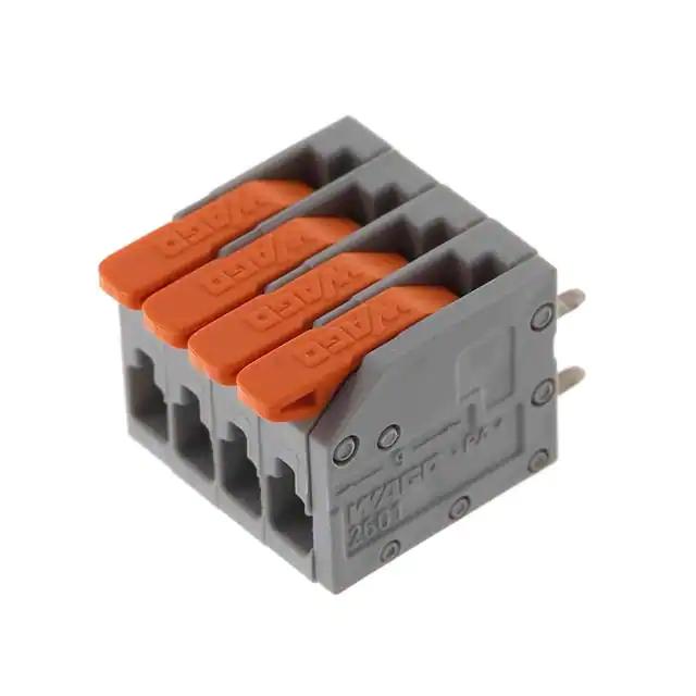 This is manufactured by WAGO Corporation. The manufacturer part number is 2601-3104. It is assigned with possible HTSUS value of 8536.90.4000. The product is rohs3 compliant. The product also features robust polyamide (pa66), nylon 6/6 housing material. The product has -60°c ~ 105°c operating temperature range. While the contact is electrolytic copper - tin plated. The mating comes in a vertical with board orientation. The wire terminals available include screwless - leg spring, push-in spring. It is shipped in box. Moreover, the product has a wire gauge of 16-26 awg. The clamp is designed from robust materials including steel - nickel plated. Its typical moisture sensitivity level is 1 (unlimited). The product carries 1 levels. It has a long 12 weeks standard lead time. Features a 10 a current in A. The splendid features of the product include lever actuated. The product is available in through hole configuration. It has a classic gray colour. It has 4 positions each level. It carries a 300 v of voltage. Moreover, the product is 0.138" (3.50mm) The product is designated with the ear99 code number