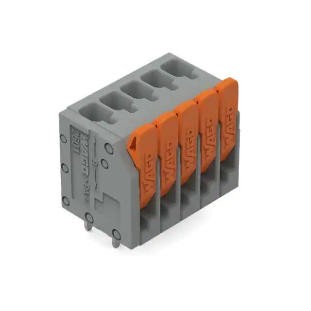 This is manufactured by WAGO Corporation. The manufacturer part number is 2601-3105. It is assigned with possible HTSUS value of 8536.90.4000. The product is rohs3 compliant. The product also features robust polyamide (pa66), nylon 6/6 housing material. The product has -60°c ~ 105°c operating temperature range. While the contact is electrolytic copper - tin plated. The mating comes in a vertical with board orientation. The wire terminals available include screwless - leg spring, push-in spring. It is shipped in box. Moreover, the product has a wire gauge of 16-26 awg. The clamp is designed from robust materials including steel - nickel plated. Its typical moisture sensitivity level is 1 (unlimited). The product carries 1 levels. It has a long 12 weeks standard lead time. Features a 10 a current in A. The splendid features of the product include lever actuated. The product is available in through hole configuration. It has a classic gray colour. It has 5 positions each level. It carries a 300 v of voltage. Moreover, the product is 0.138" (3.50mm) The product is designated with the ear99 code number