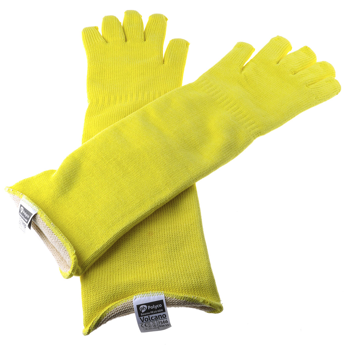 This is Volcano Yellow Heat Resistant Kevlar Reusable Gloves 11 manufactured by BM Polyco. The manufacturer part number is 7566.