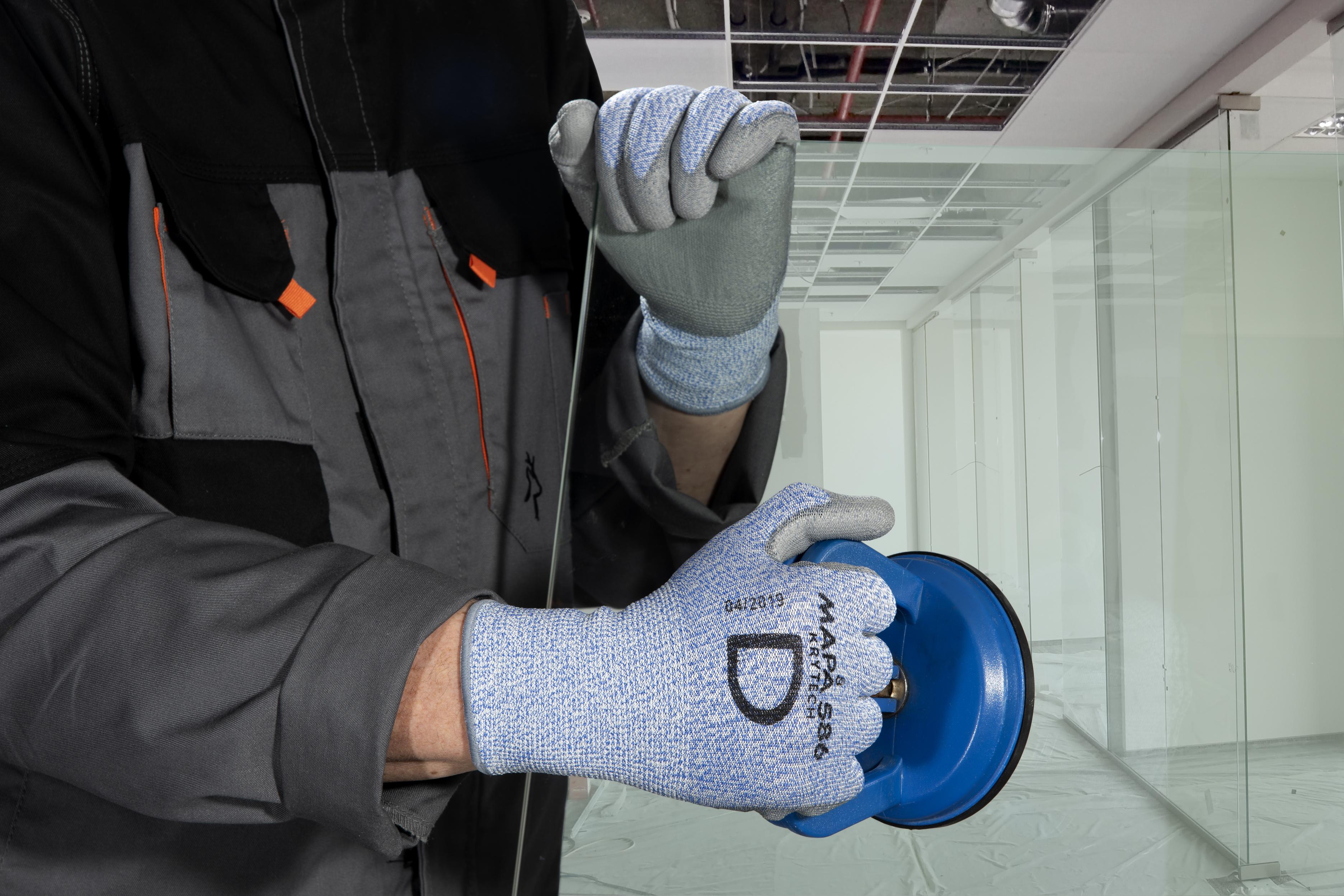 This is Krytech 586 Grey Cut Resistant PUR Polyurethane-Coated Cut Resistant Gloves 8 manufactured by Mapa Spontex. The manufacturer part number is 586418.